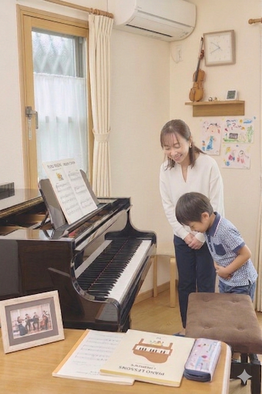 小さなお子様には、楽しさを大切にしたプレピアノレッスンを行っています。音符やリズムに親しみながら、自然と音楽を身近に感じられるようサポートしています。