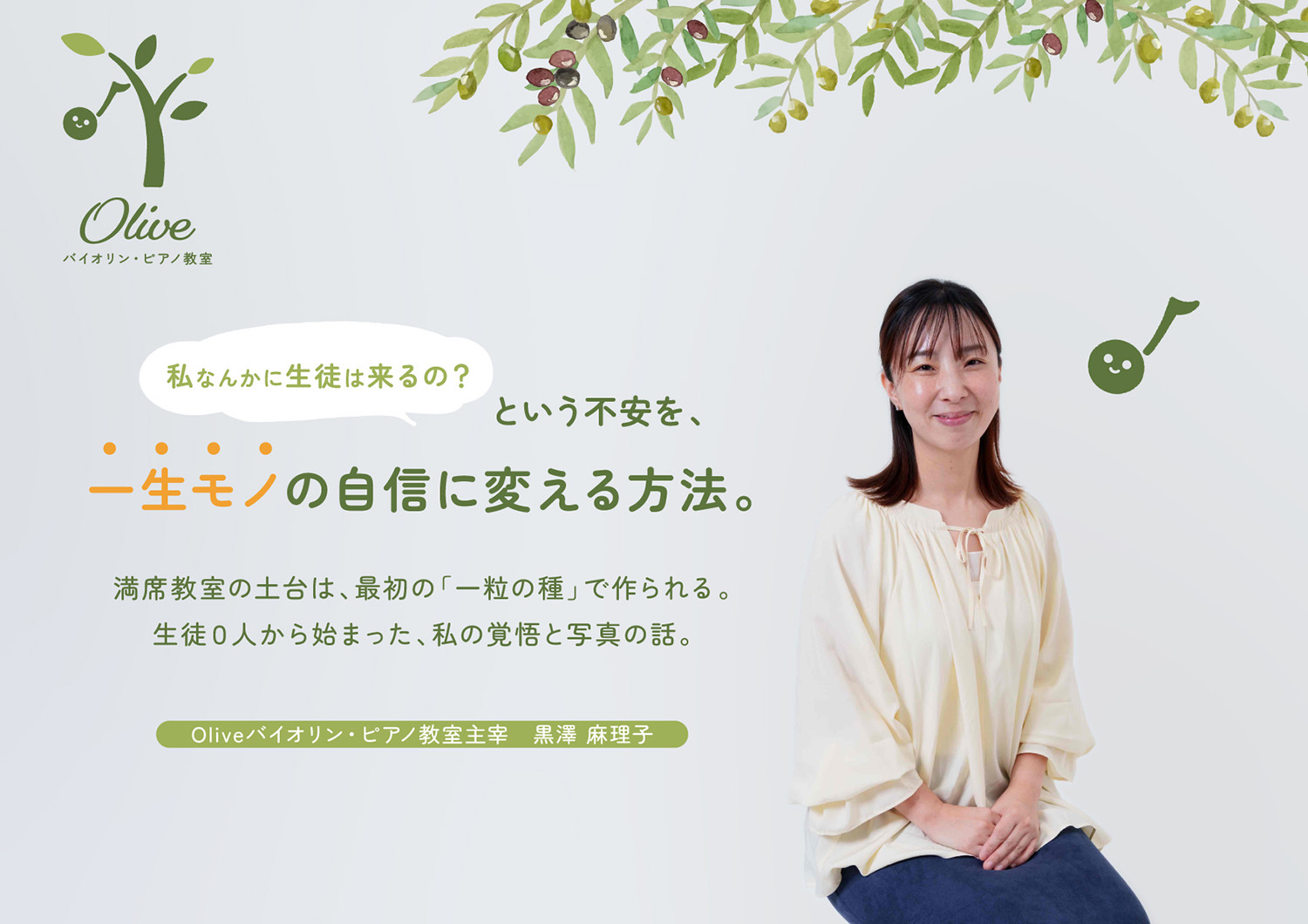 現在、Oliveバイオリン・ピアノ教室を主宰している、黒澤麻理子です。